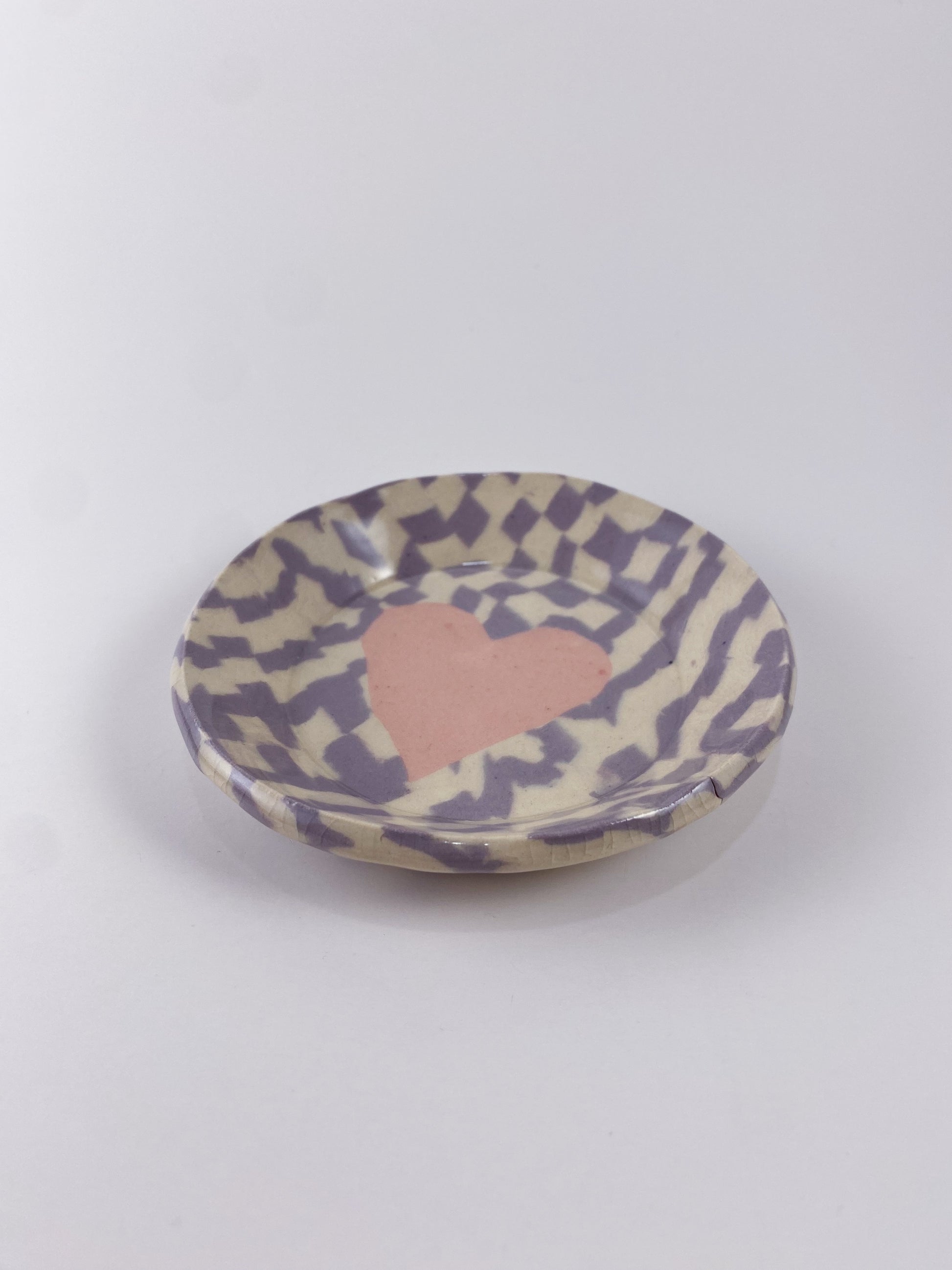 A cutesy multipurpose dish for your trinkets, jewelry, snacks, etc. You decide :) Made from dyed and patterned clay.