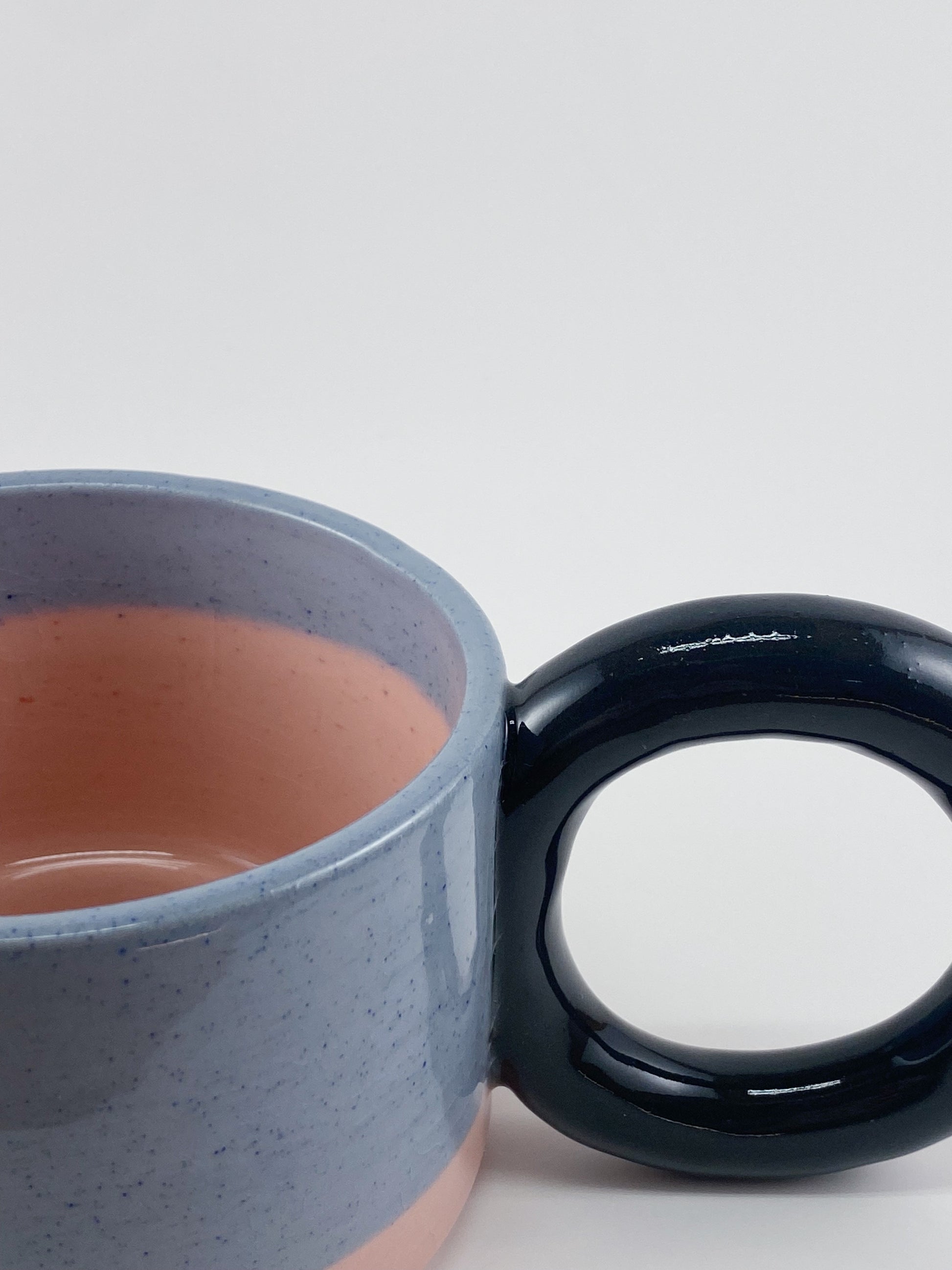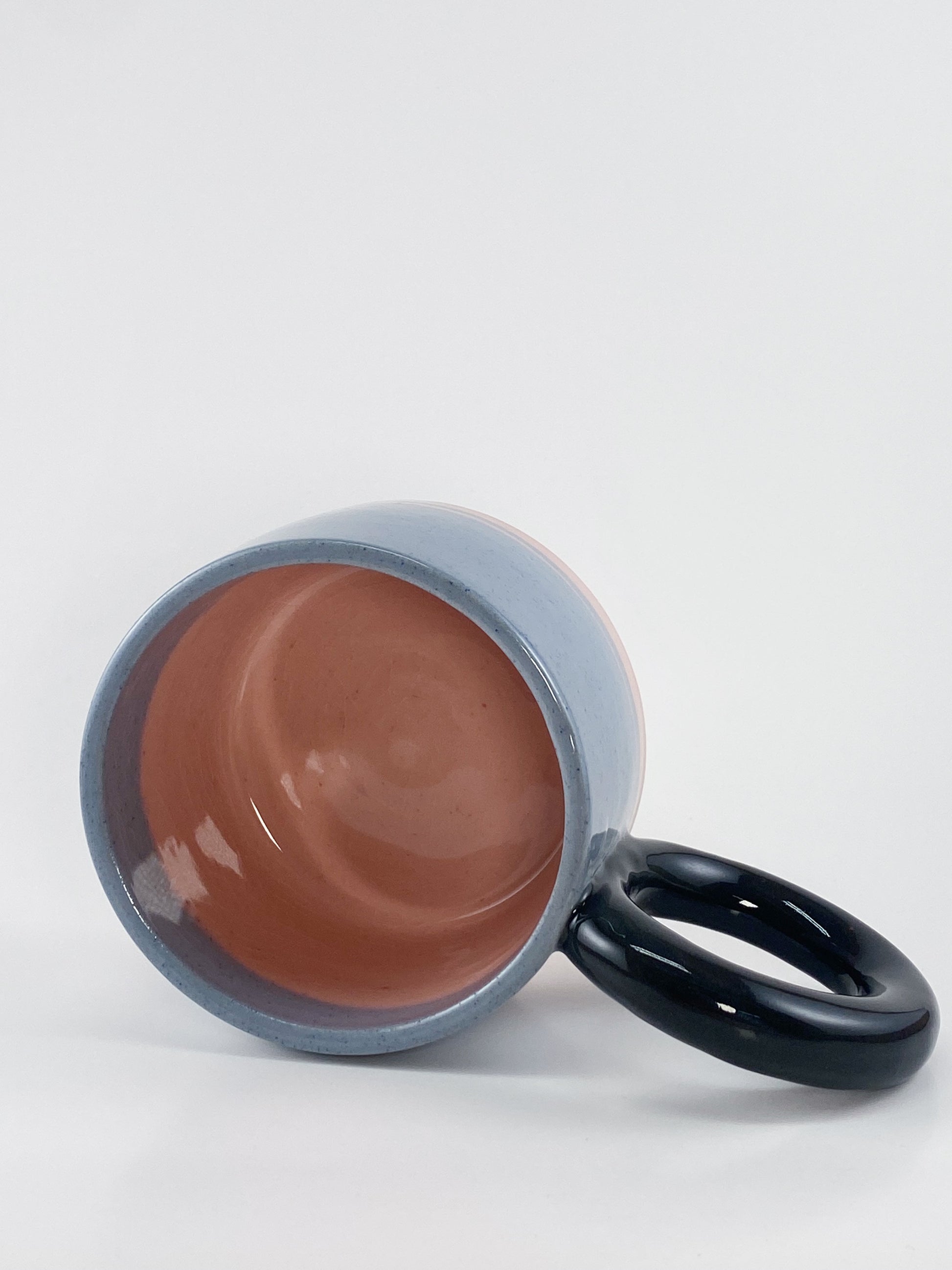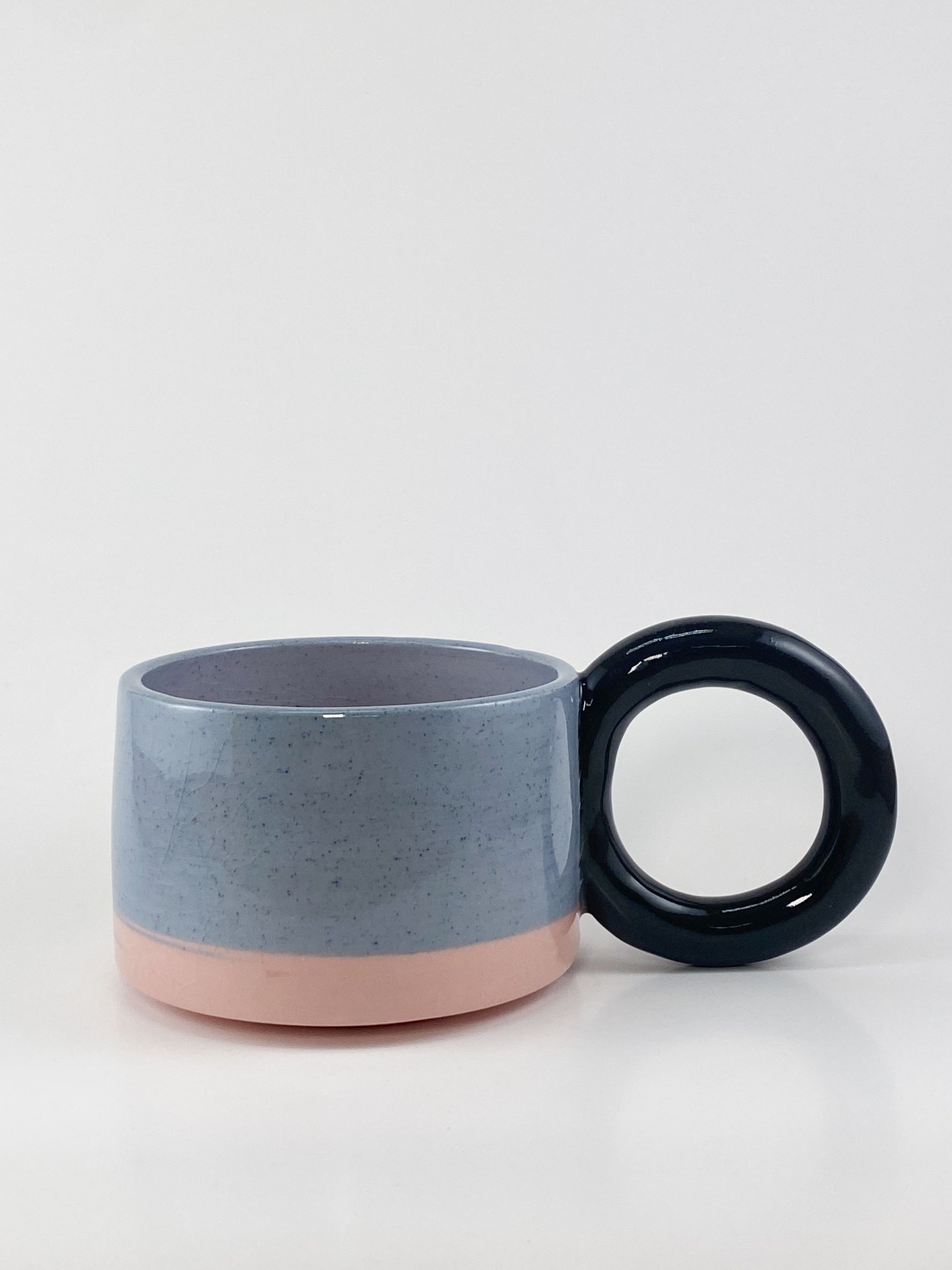 Introducing the TriColor Mug! Crafted from dyed clays, this cutie adds a splash of happiness to your day. With its unique blended body and circular handle design, it's truly one-of-a-kind.