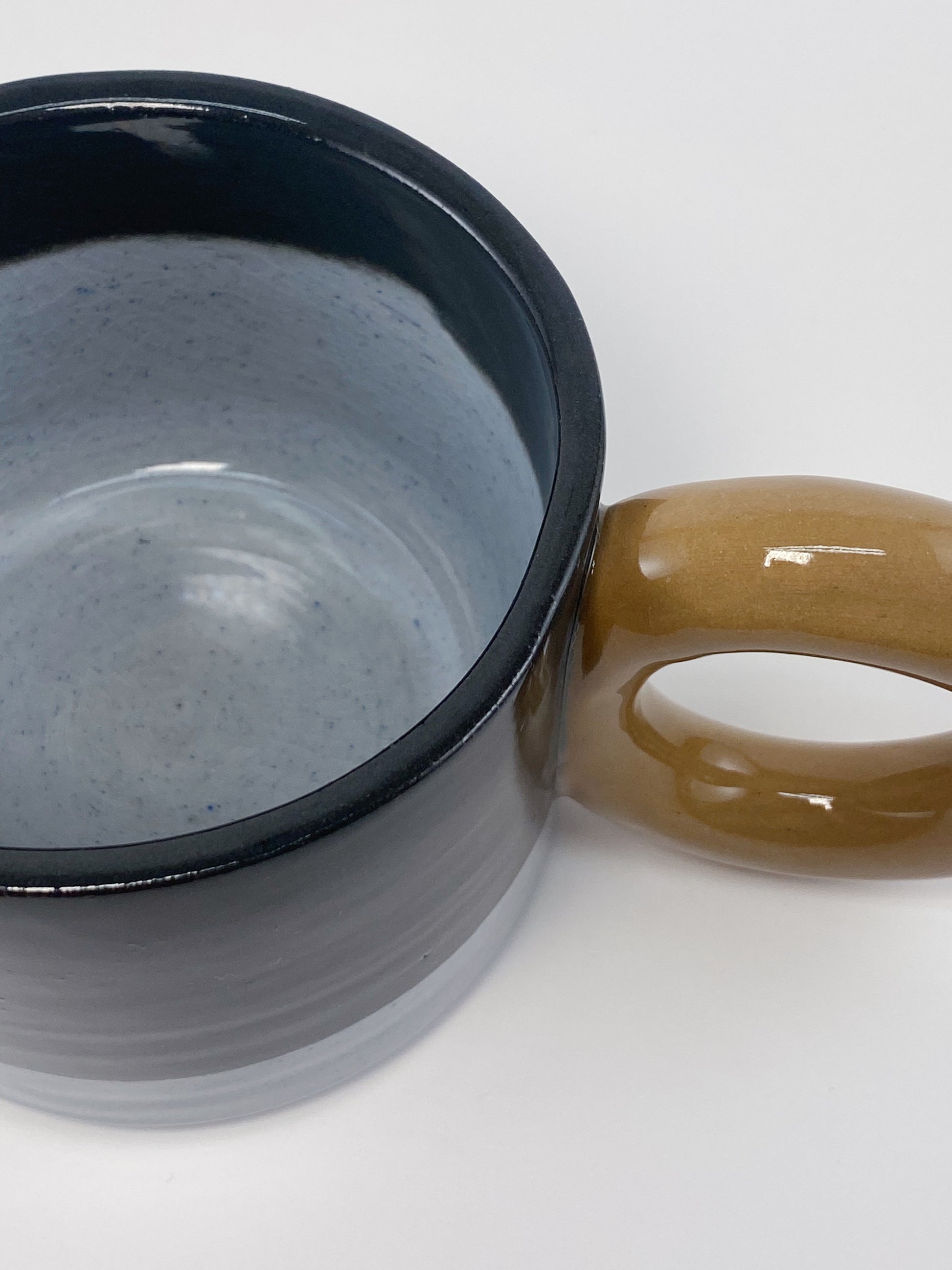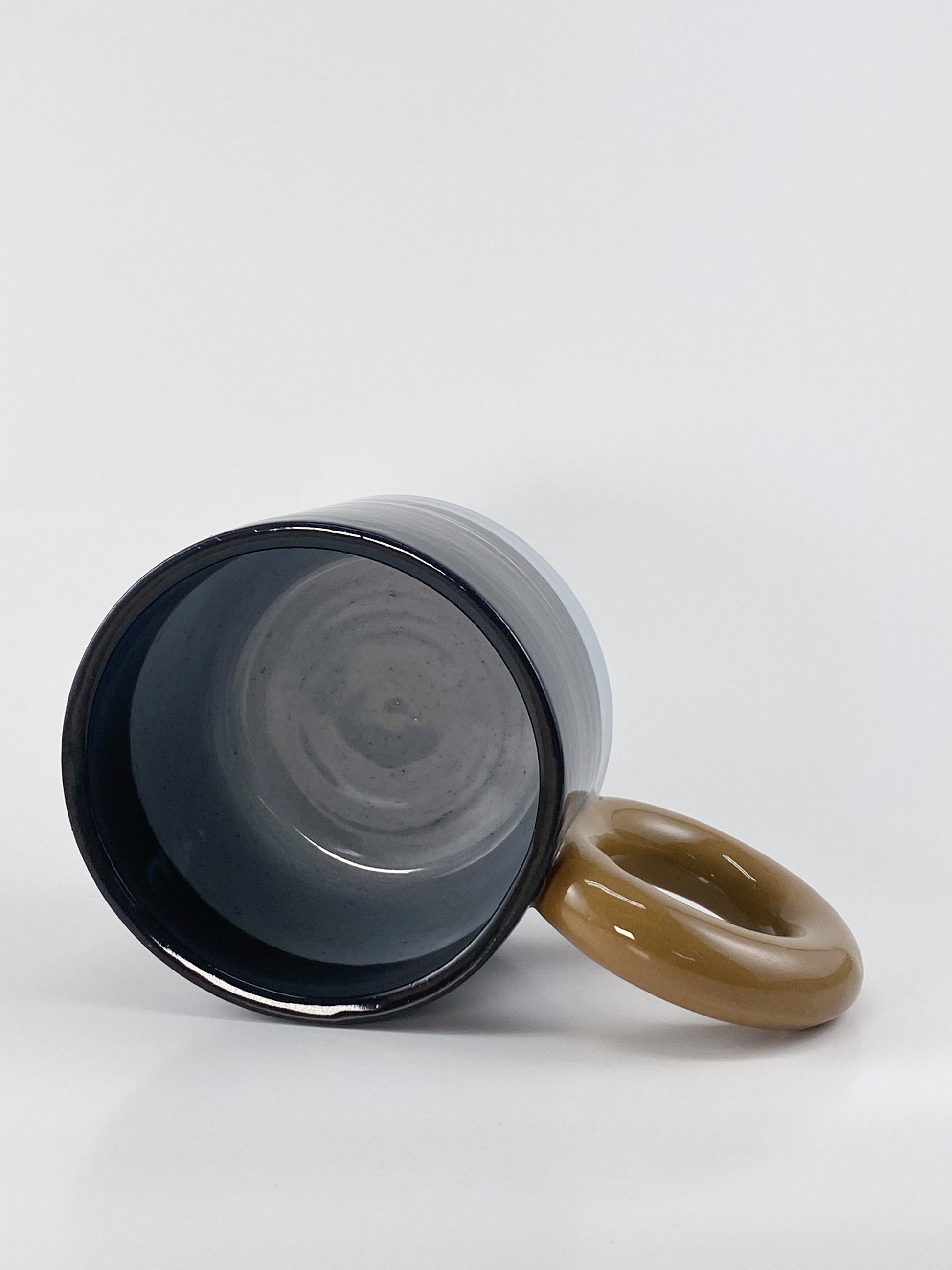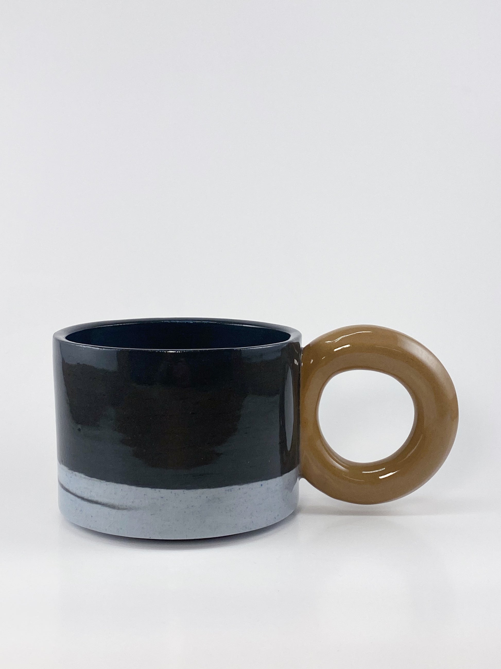 Introducing the TriColor Mug! Crafted from dyed clays, this cutie adds a splash of happiness to your day. With its unique blended body and circular handle design, it's truly one-of-a-kind.